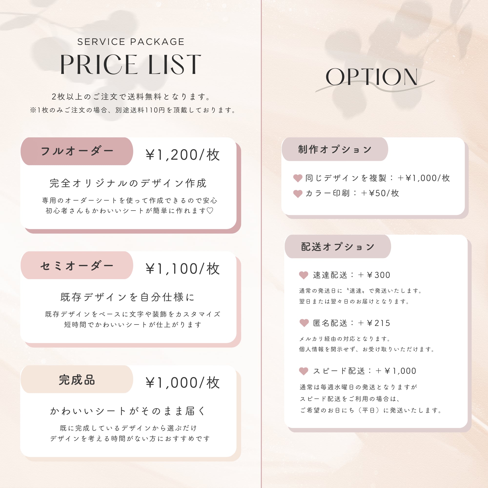 ● フルオーダー:¥1,200/枚
